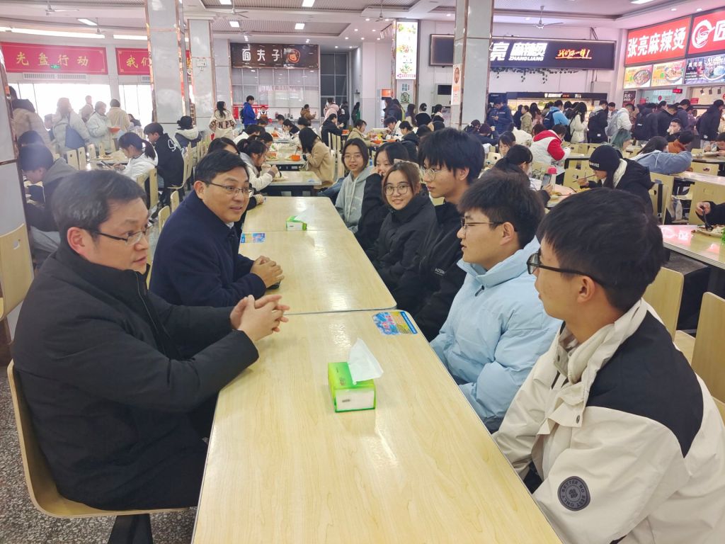 本网讯(通讯员 张帆)11月25日中午,党委常委、组织部长张海蛟,员工工作部副部长、资助管理中心副主任杨金花,taptap点点体育经理曹政在学子会馆一楼参加“校领导午餐会”,与2024级临床医学(免费医学)2班6名员工代表亲切交谈。